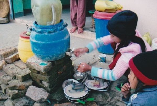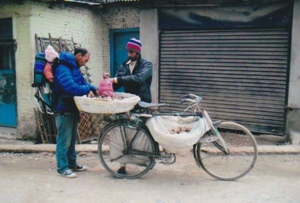 Nepal is a caste system society much like India in culture and religion. Majority Hindu, Buddhists are only in the mountainous and remote regions. With dal baht dinners, the dusty streets of Kathmandu are filled with sounds of hustle and bustle. Vegetable carts on the road for dinner ingredients, hand grinding juicers and motorbikes fill the chaotic streets. "Yembul" as Sherpa call the city, is a place of thoroughfare for tourists buying last minute items before departing to the high altitudes of our Everest Region. In the city, bells ring, marigolds decorate, and tailors foot petal elaborate garments for locals and acclimated tourists alike.