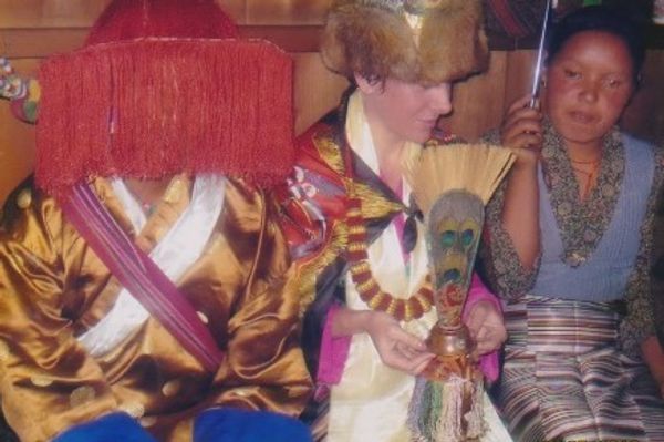 Prayer flags strung all over, electricity had arrived the year before our marriage, the hydro-electric plant was a project my new Husband helped build. Bengal tiger "Zeek" roam at night, and during our 7 day wedding celebration, the villagers brought me from house to house on horseback, the bells of the horse rang with my heart.